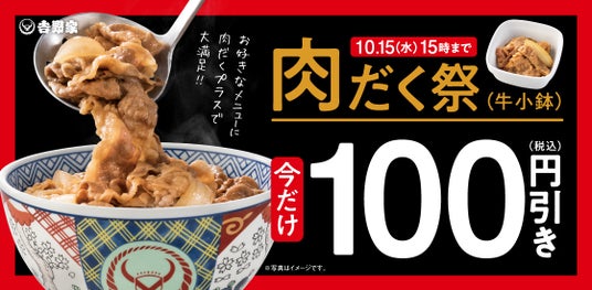 株式会社吉野家は、牛丼や定食に手軽に「追い肉」できる人気サイドメニュー**「肉だく(牛小鉢)」がお得になる『肉だく祭』**を、全国の吉野家店舗(一部除く)で開催します!