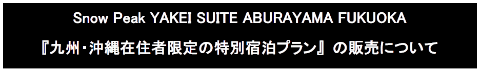 福岡市内の中心部から車で約30分という好立地にありながら、福岡市内を一望できる絶景のロケーションが魅力の**「Snow Peak YAKEI SUITE ABURAYAMA FUKUOKA」**が、九州・沖縄在住者限定の特別な宿泊プランを販売します!