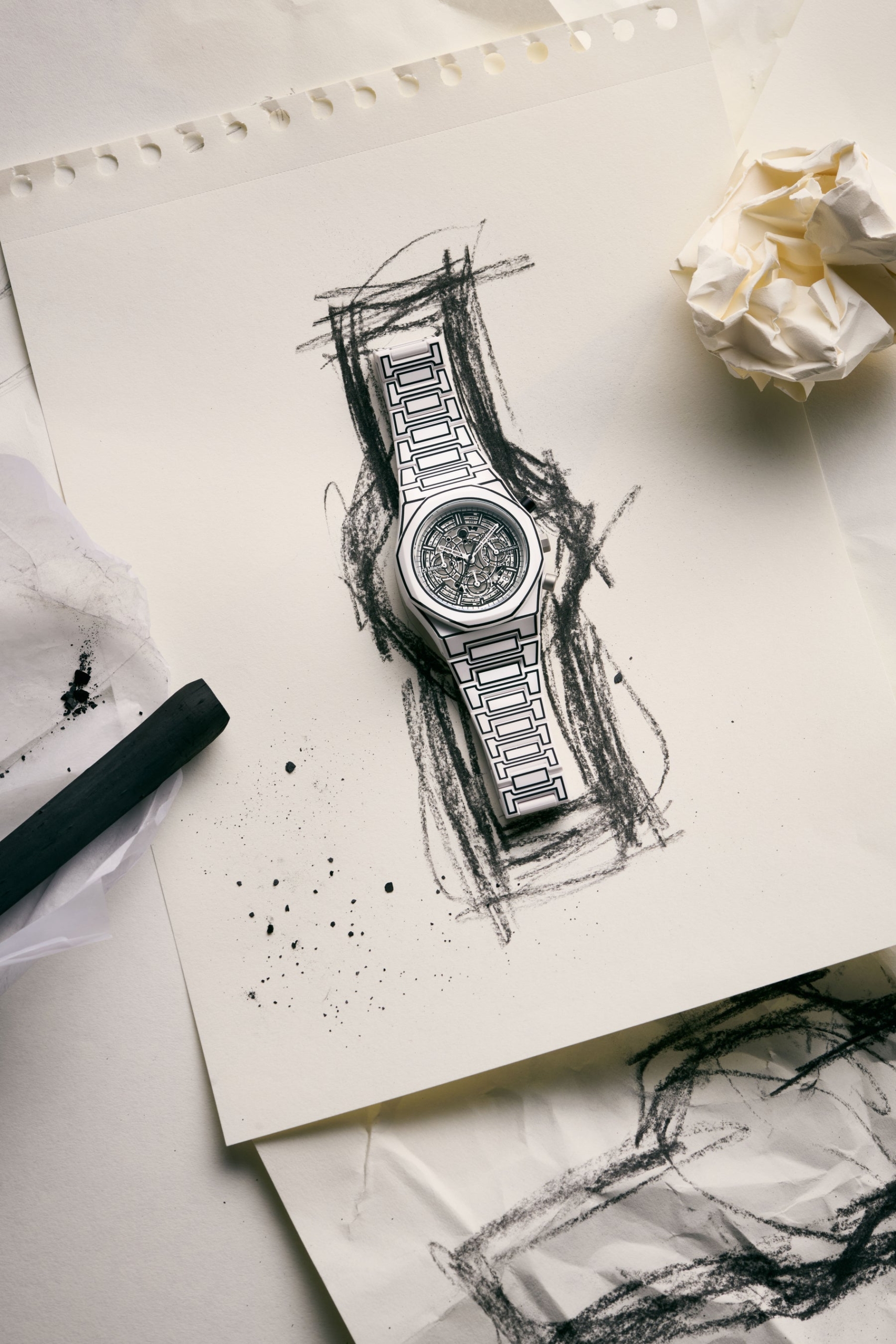 まるで手首に直接描かれたかのようなドローイング感覚のタイムピースです。トーン・オン・トーンのスケルトンダイヤルが奥行きを生み出し、時計の構造そのものがアートとして立ち上がります。