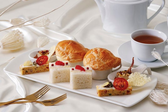 セイボリー(軽食)も、フォアグラのマシュマロやターキーのサンドウィッチなど、フェスティブシーズンにふさわしい華やかな4品が並びます。