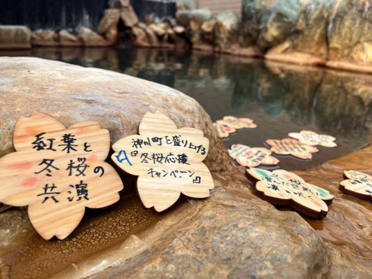 【埼玉県】紅葉×桜の共演!神川町・城峯公園の「冬桜」開花に合わせ、白寿の湯でお得な割引クーポン配布と「桜型ひのき風呂」開催!
