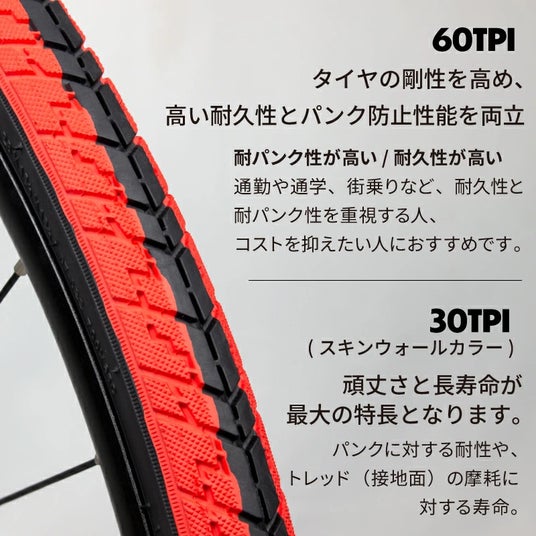 - 60 TPIケーシングで高い耐久性とパンク防止性
