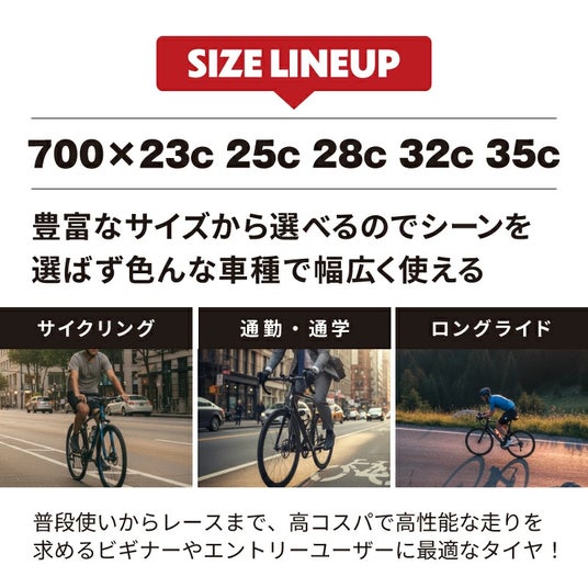 700Cに対応し、23cから25c、28c、32c、35cまでの5サイズを展開。