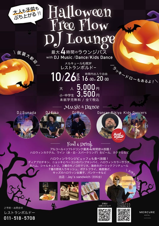 【札幌】4時間食べ飲み放題!メルキュール札幌で『ハロウィン Free Flow DJラウンジ』開催!DJ&キッズダンサーが会場を熱狂させる!