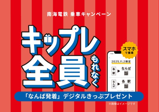 株式会社ビーマップは、南海電気鉄道株式会社(南海電鉄)が2025年11月2日(日)に開催する「南海電鉄創業140周年記念イベント スペシャルサンクスフェスタ in なんば広場」に合わせ、**難波駅発着のデジタルきっぷプレゼント企画「キップレ」**を実施します。