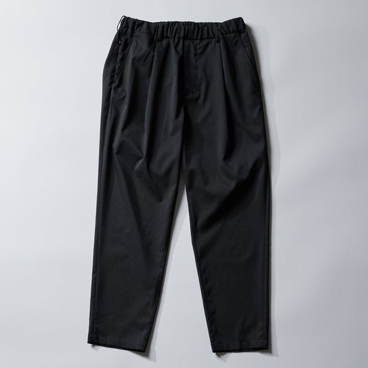 特徴:独自素材「ultimex」を使用した、ワンタック入りのややゆったりシルエットのイージーパンツ。ウエストの紐は内側でも外側でも結べる仕様。