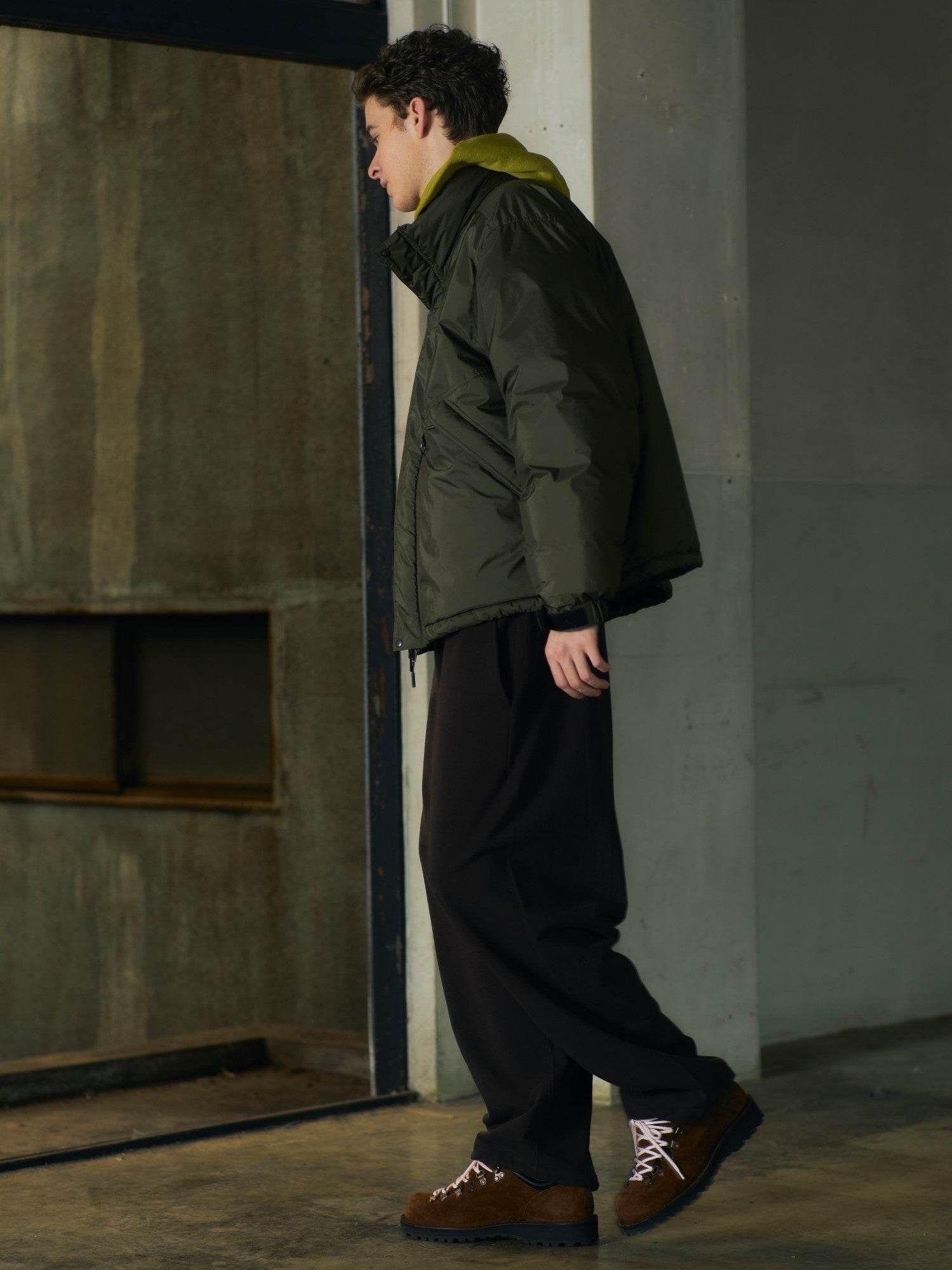 - 着脱可能なフードは、使わない時に内ポケットに収納することで、ショートブルゾンへと表情を変えられます。