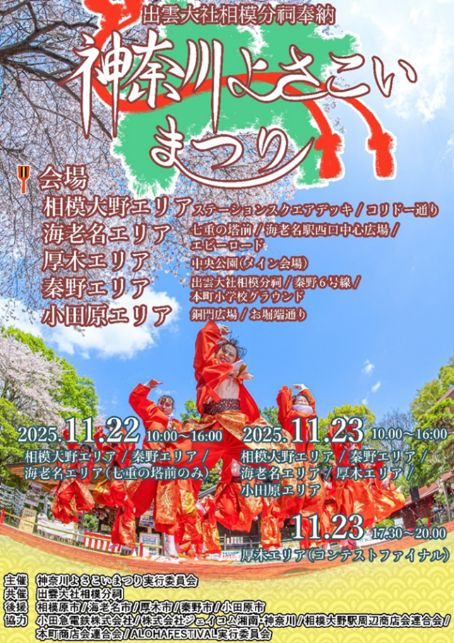 神奈川県を代表する新たな祭典を目指す「出雲大社相模分祠奉納 第1回神奈川よさこいまつり」が、2025年11月22日(土)・23日(日)の2日間にわたって開催されます!