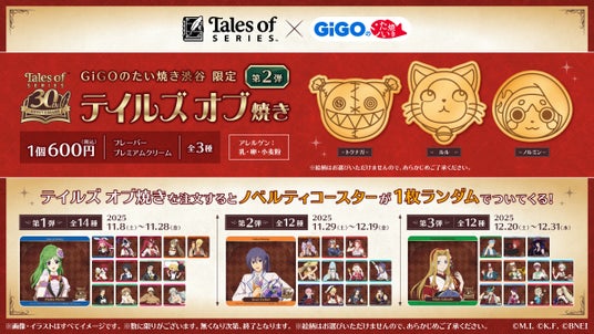 シリーズ30周年記念!『テイルズ オブ』× GiGOコラボ第2弾開催決定!激カワ「テイルズ オブ焼き」&限定コースターをGETせよ!