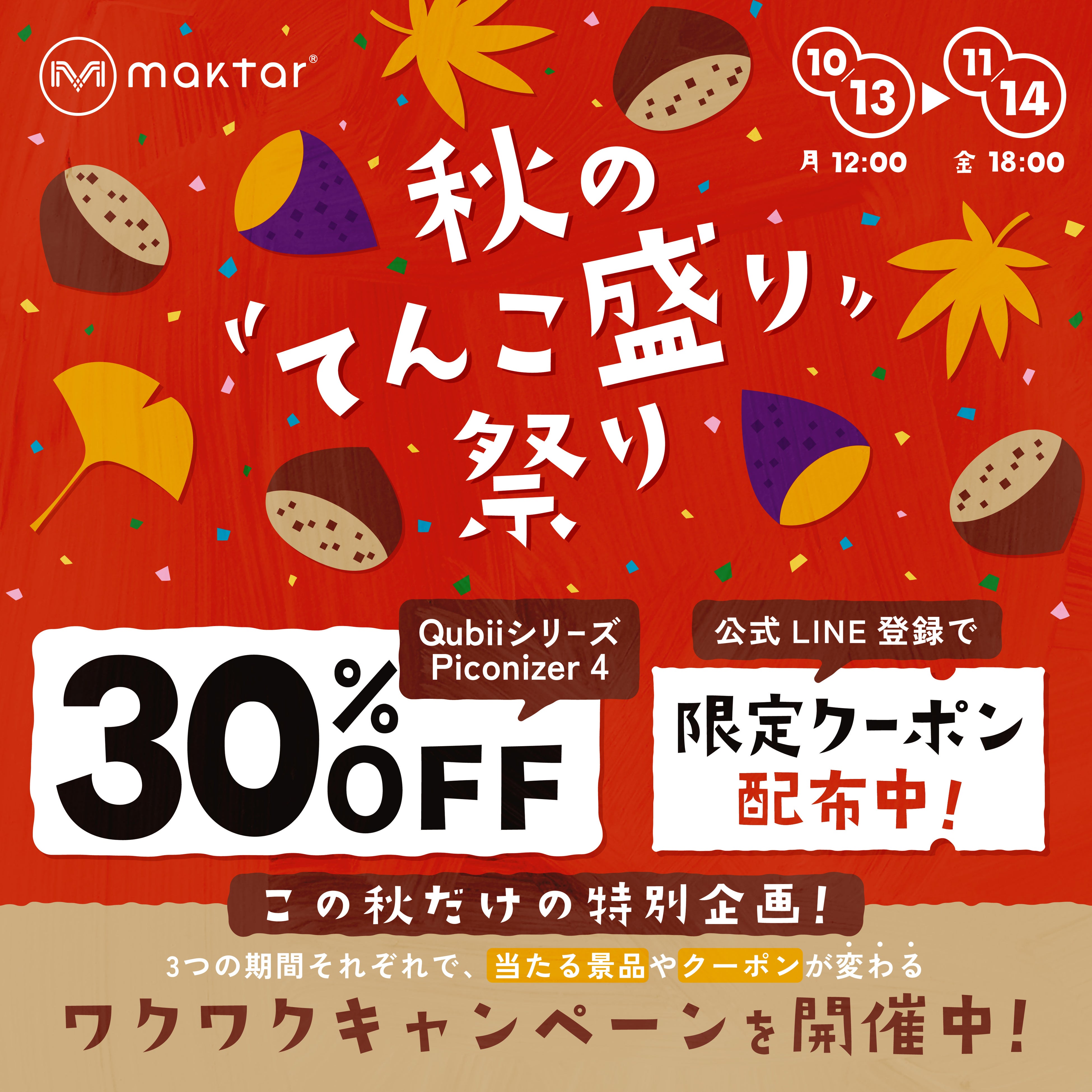 Maktar株式会社は、公式オンラインショップにて恒例の大型セール**「Maktar 秋のてんこもり祭り-2025-」**を、2025年10月13日(月)から11月14日(金)まで開催中です!