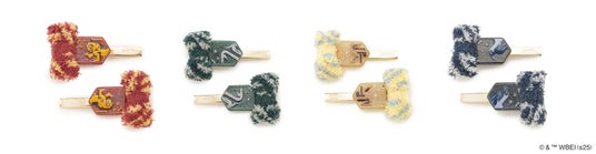 各寮のエンブレムをあしらった2本組のヘアクリップセット。グリッターがきらめくエンブレムに、同シリーズのニットウェアと同じ素材のふんわりとしたリボンをあしらいました。