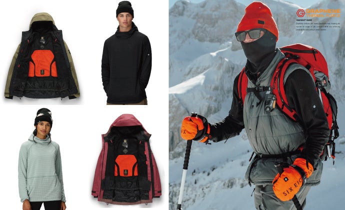 過酷な雪山環境での快適性を極限まで追求したこの新製品は、高い熱伝導性を持つグラフェンによって、**“冷えすぎず、蒸れすぎない”**という理想的な体温バランスを実現する「体温コントロール型ウェア」として、スノーウェアの新基準を打ち立てます。