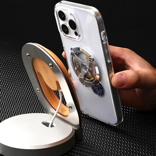 時計の脱進機(エスケープメント)をモチーフにしたこのケースは、背面に精巧な機構を内蔵し、実際にそのメカニズムが動作します。これは、スマートフォンを保護するだけでなく、「精密な時計づくりの技術を日常のアイテムに落とし込んだ」特別なアートピースです。