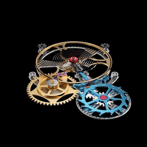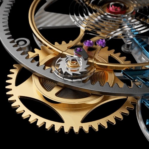 - 精巧な仕上げ:内部の歯車は耐久性のあるステンレススチール製、回転部分には真鍮、そして動力を与えるゼンマイには炭素鋼が使用されています。部品はすべて熟練職人の手作業による研磨や仕上げが施されています。