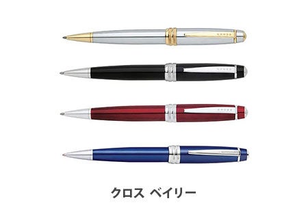 | クロス ベイリー | 艶やかなラッカー仕上げの太軸。重厚な太軸が心地よい筆記体験をもたらす、ビジネスシーンに映える一本。 | レーザー加工、パッド印刷 | 5個~ | 7,200円~ |