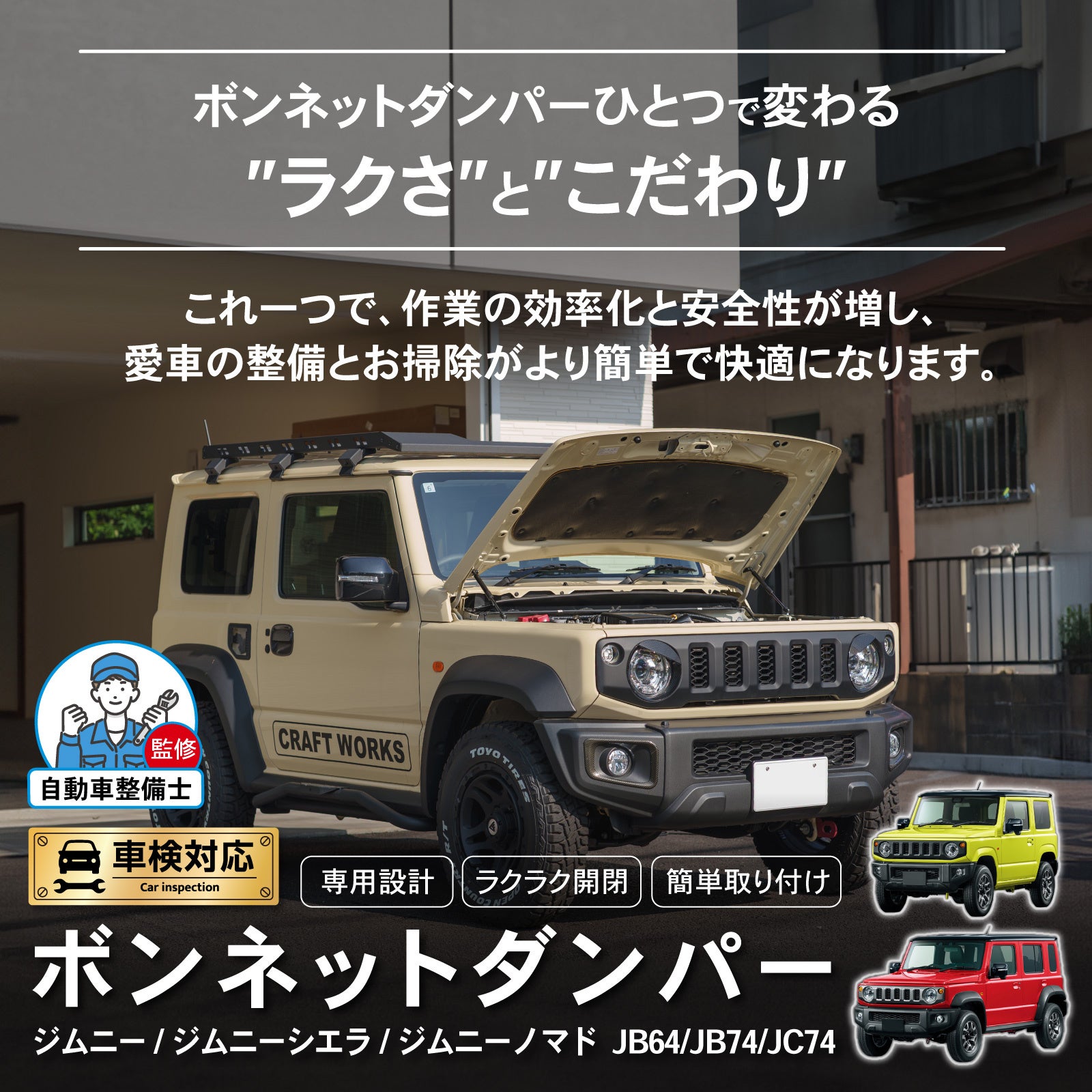 ジムニー/ジムニーシエラ/ジムニーノマド ボンネットダンパー片手で簡単開閉:油圧サポートで片手でスムーズにボンネットの開け閉めが可能。
