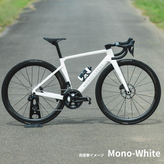 「走るたび、色がつく。」をブランドコンセプトに掲げ、ロードバイクが持つ「自由」という本質を取り戻すために誕生したMONOCHROME。そのフレームは、余計な装飾を削ぎ落としたシンプルなデザイン(パールホワイト/カーボンブラックの2色)が特徴です。