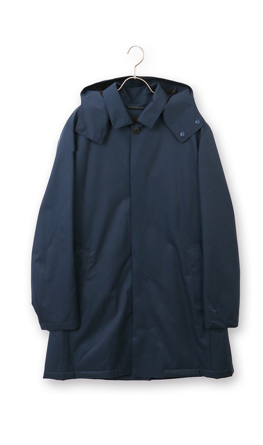 ビジネスシーンでも着用しやすいシンプルなフード付きステンカラーコートで、フードは取り外し可能な2WAY仕様。薄くて軽く、温かい、冬の通勤のストレスを軽減する一着です。