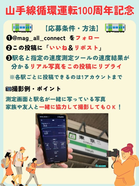 【山手線100周年記念】全30駅を仲間と“制覇”せよ!通信速度を測って投稿する参加型リアルゲーム「山手線制覇ゲーム」開幕!Amazonギフト券獲得のチャンス!