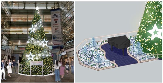 • デザイン: 女子美術大学の学生がツリーのテーマに合わせ装飾デザインを手掛けた、アートなステーションピアノが登場し、街を音楽で彩ります。