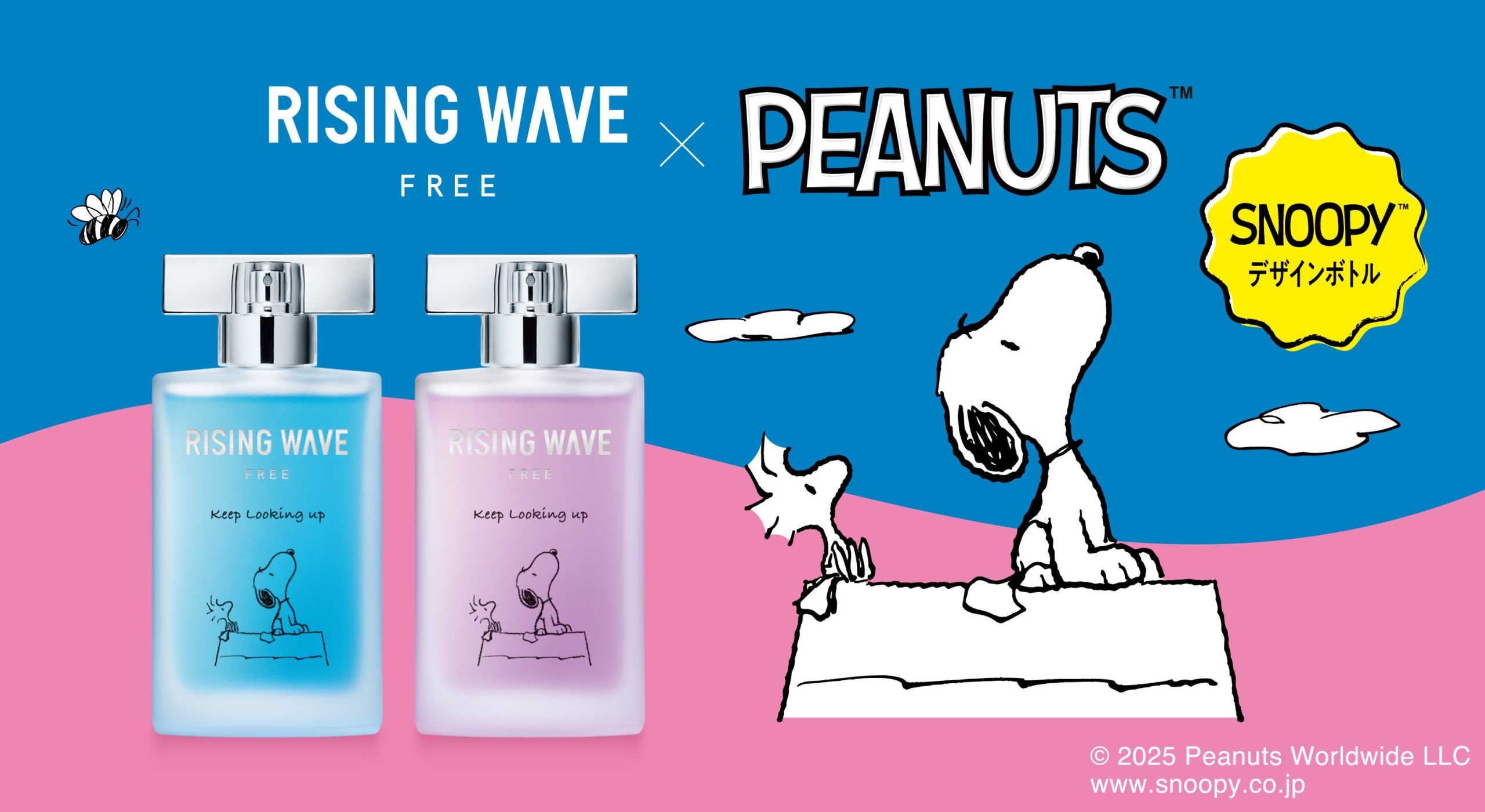 「人生は前向きに」ライジングウェーブ20周年をスヌーピーが祝福!限定デザイン香水「ライトブルー」「サンセットピンク」が11/1発売