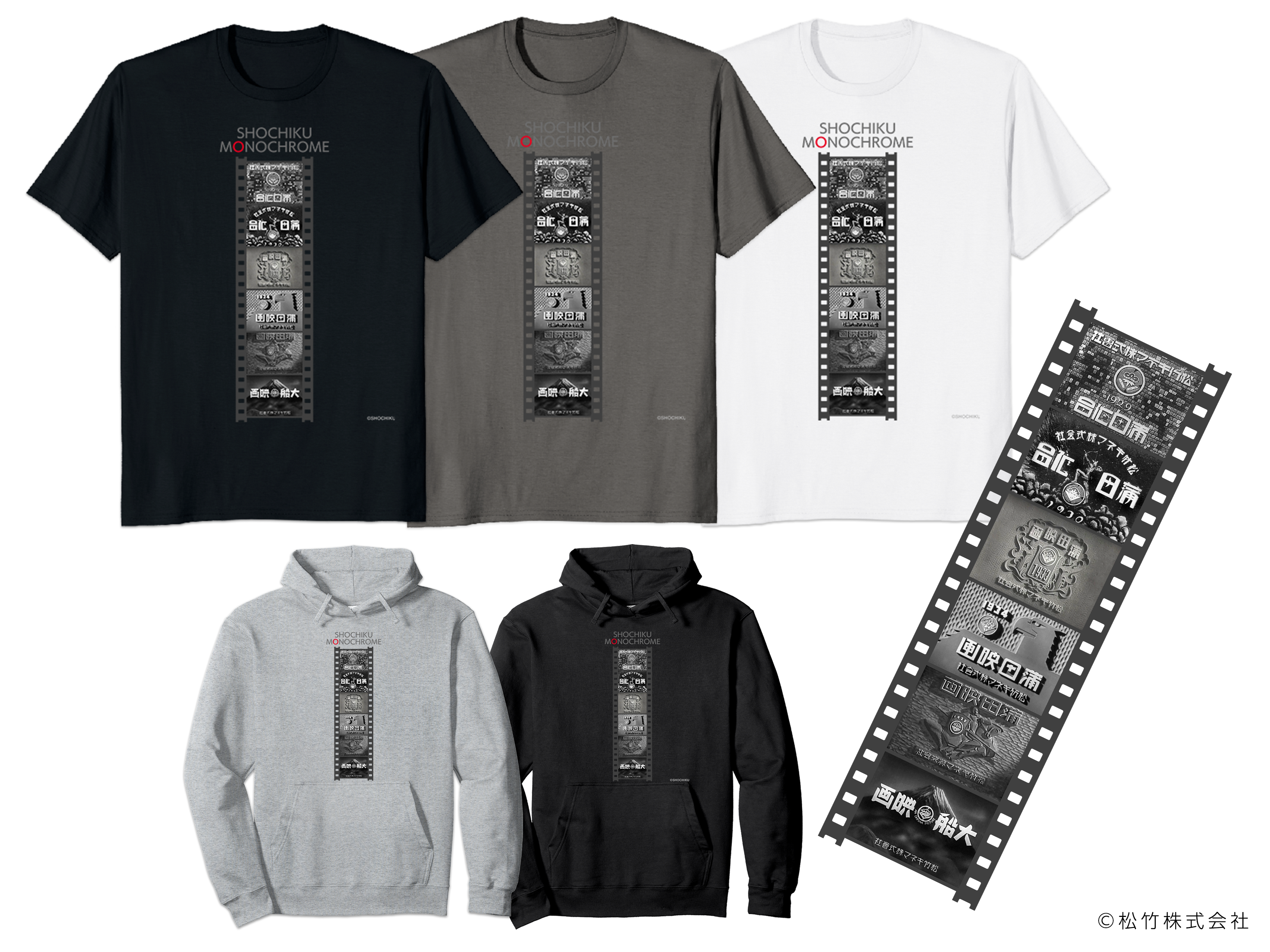 根強い人気を誇る松竹映画アパレルシリーズの第3弾として、1920年代〜1930年代の昭和初期、主に蒲田撮影所時代の映画の冒頭を飾った**“モノクロオープニングロゴ”をデザインしたTシャツとパーカーが、Amazonのオンデマンド・プリントサービス「Merch on Demand」**にて、**11月1日(土)**より発売されました。