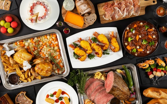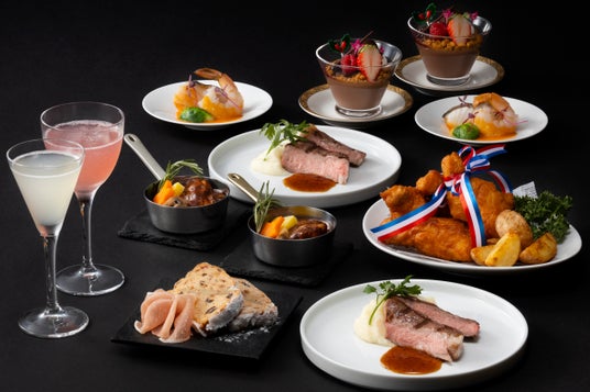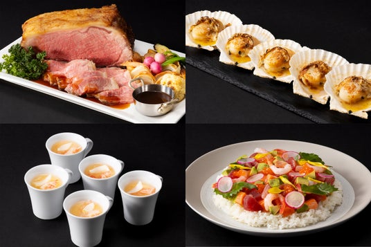 ・A5 ランク白老牛のローストビーフ トリュフソース ・ロブスターのテルミドールグラタン ・北海道産鶏肉のロティサリーチキン ・絞りたて苺のモンブラン 他
