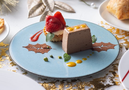 - ショコラムースと苺のタルトレット: 濃厚なショコラムースと甘酸っぱい苺のバランスが絶妙な、ビター&スイートな華やかなデザート。