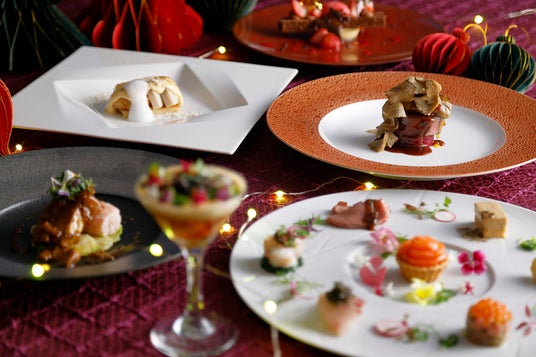 - クリスマス限定ディナーコース(18,000円): シャンパンでの乾杯付き。シェフが腕をふるうコースのデザートは、ワゴンサービスで提供されます。