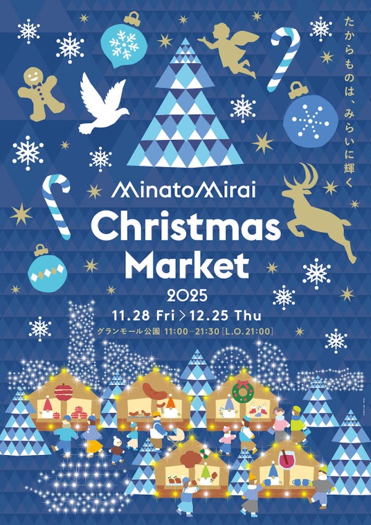 • 内容: クリスマスの装飾が施された多数のヒュッテ(露店)が並び、クリスマスならではのグルメやお菓子を販売。ウォーターフロントが広がるみなとみらいならではの新しい港湾都市型のクリスマスマーケットとして初開催されます。