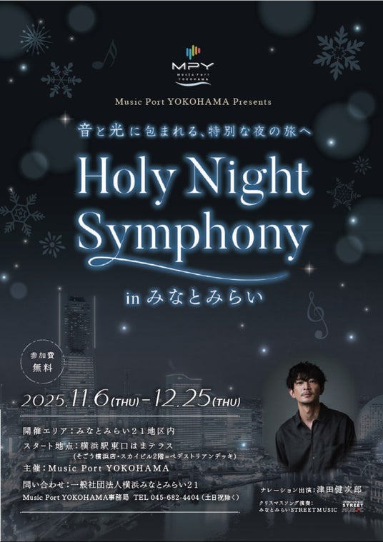 • 出演: 声優・俳優の津田健次郎氏のナレーションと、地区内で活躍するミュージシャンによるクリスマスソングで、幻想的なイルミネーションを楽しめます。