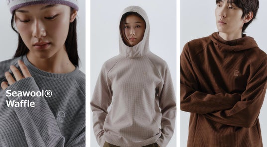 「SEAWOOL® Waffle」シリーズは、環境に優しい2つの革新的な素材を混紡したワッフル組織の生地が特徴です。