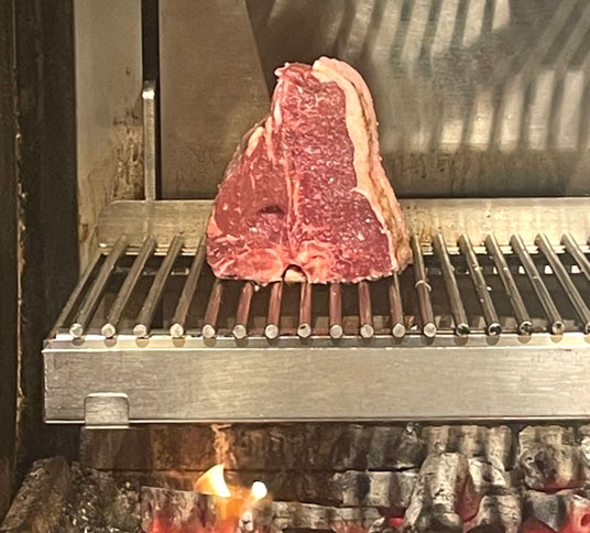 森の木々から生まれた**熾火(おきび)**でじっくり火入れされたTボーンステーキは、香ばしさとアルゼンチン牛の深い旨みが際立つ、赤身肉の真の味わいを楽しめる逸品です。