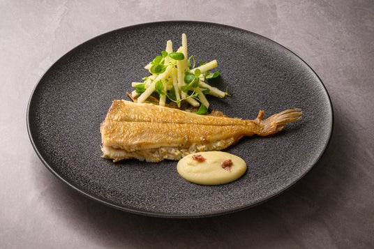 - 山陰沖エテガレイのムニエル 根セロリソース:脂がのって身が厚く、旨味が深い山陰沖産のエテガレイの干物をムニエルに。コクのある根セロリのソースが絶妙にマッチします。