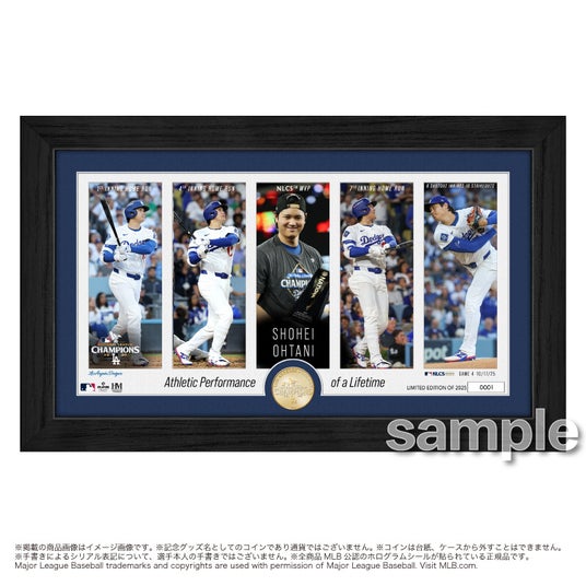 - 仕様: 表面にMVPに輝く大谷選手のフォト、裏面にナショナル・リーグ優勝デザインを刻印。24ktゴールドメッキが施された重厚感あるコイン。