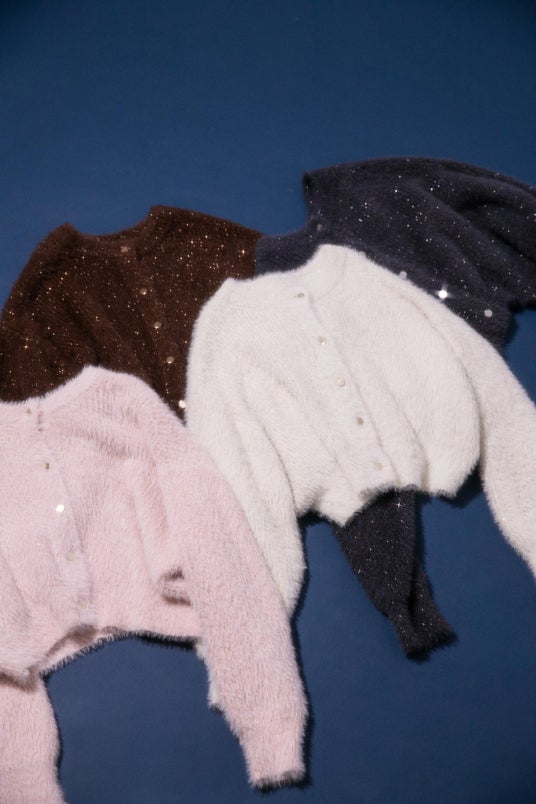 1枚で着映えするさりげないラメ感がポイントのニットカーディガン。1度着たら虜になるふわふわとした素材で冬にイチオシの着心地です。