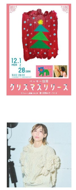 タレント・ベッキーさんが日常で感じた思いを絵にしたアート作品が登場。「クリスマスリリース」と題した作品群と、来場者と一緒に作り上げる**「クリスマスツリー」**が楽しめます。(12/1〜28)