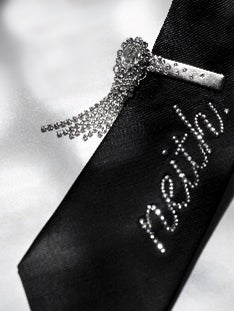 貴和製作所のクリスタルをふんだんに盛り込み、ネクタイピンにデザインしました。ヘアアクセサリーとしても使え、ホリデイシーズンを煌びやかに彩ります。