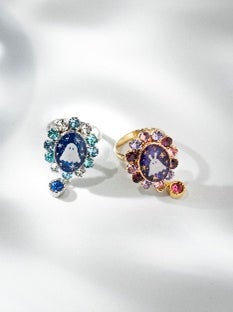 手描きの絵画とクリスタルを組み合わせたリング。