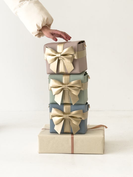 大きなリボンが乙女心をくすぐる、とびきりキュートなプレゼントボックスバッグがお目見え。マチもしっかりとしていて、長財布も入るサイズ感で使いやすさも。