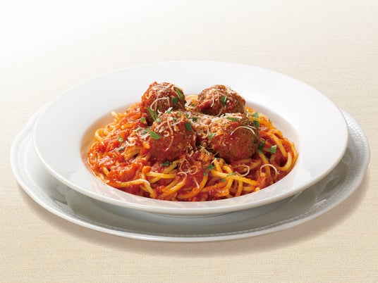黒×黒ハンバーグのポルペッティーニのスパゲッティ 1,580円(税込 1,738円)ロイヤルホストの人気商品「黒×黒ハンバーグ」に、パルミジャーノ・レッジャーノを合わせ、ポルぺッティーニ(イタリア風肉団子)に仕立てました。店舗で仕込むポルペッティーニを酸味と旨味のバランスにこだわったトマト風味のソースと相性の良いスパゲッティでお楽しみください。