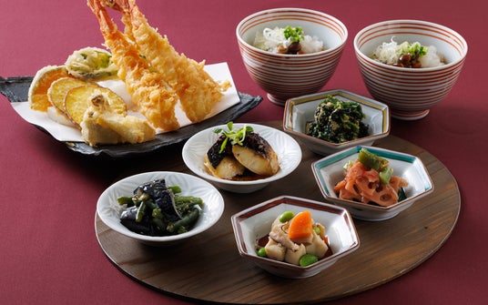 渡り蟹ラーメン - 和のおもてなし: 蓮根や茄子など季節の味を活かした日替わりのおばんざいや、揚げたての天ぷら(大海老・茸・野菜)。