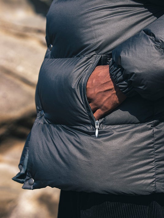 - 素材: KAJIFのULTIMATELIGHT®(アルティメットライト)生地を使用。極細糸により、ダウンのボリューム感を損なうことなく非常に軽量な仕上がりを実現。