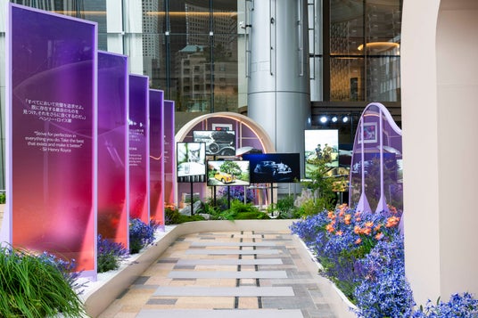 麻布台ヒルズの会場では、これらの4台の展示に加え、ビスポークのための色鮮やかなマテリアルやアクセサリー、音楽を通じてファントムの歴史を彩る体験コーナーも設けられました。