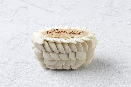 Anniversary Dessert 6,500円(税込) 記憶が彩を添える、RAUのアニバーサリーデセール。「持ち帰れるアシェットデセール」がコンセプトのシェアできるアントルメデセールです。陶器の器をイメージした形状に記念日の情景を閉じ込めてほしいというシェフの思いが込められています。