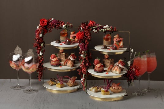 苺とチョコレートのアフタヌーンティー 5,580円~(税サ込) 旬の苺とこだわりのチョコレートをテーマとした豪華なアフタヌーンティー。チョコレートの製造の過程で通常破棄されるカカオハスク(カカオ豆の皮)やカカオニブをブレンドした紅茶も限定で用意しています。