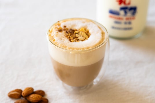 美山みるくのアーモンドラテ 770円(税込) 美山の自然が育んだ濃厚ミルクと、香ばしいアーモンドの優しいハーモニー。心もほっと温まる冬限定の一杯です。