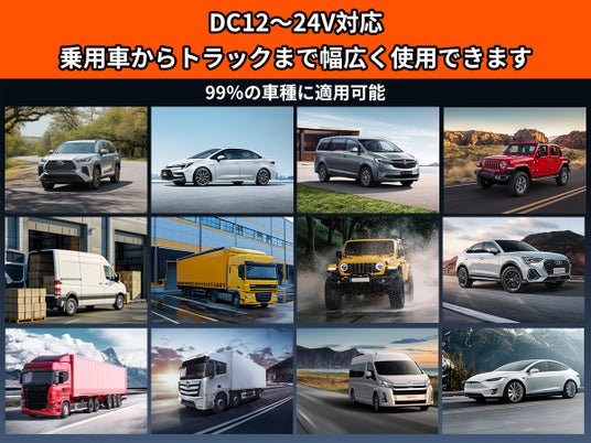 - 幅広い車種対応: DC12~24V対応で、軽自動車からトラックまで約99%の車種に設置可能。
