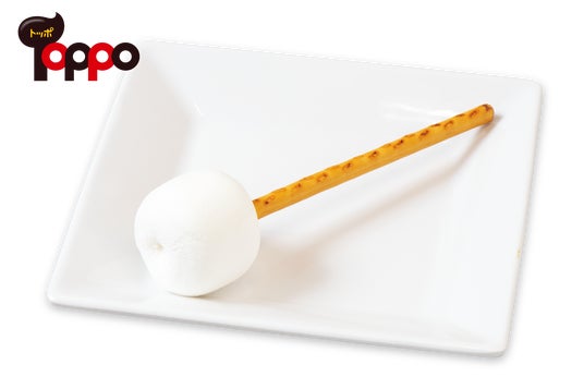 トッポで?!焼きマシュマロ香ばしく焼いたマシュマロを、トッポと一緒にパクリ。とろける甘さがクセになる、見た目も楽しい一品。