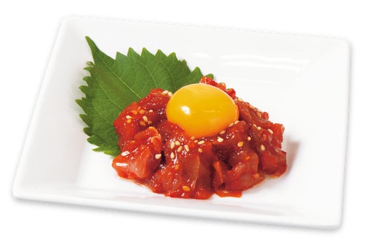 - まぐろユッケ丼/ユッケ:ピリッと旨辛いタレと卵黄が絡む贅沢ユッケは、ホカホカごはんに乗せたユッケ丼としても登場。お酒や焼肉の〆にぴったりです。(じゅうカルコース、他対象)